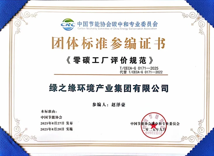 近日,中国节能协会正式发布实施新版《零碳工厂评价规范》。该标准在2022版基础上完成全面升级与优化,进一步完善零碳工厂评价体系,为工业绿色低碳发展提供更科学的指引。绿之缘环境产业集团(以下简称“绿之缘集团”)作为重要参编单位,深度参与标准修订全过程,以专业实力助力行业标准完善。
